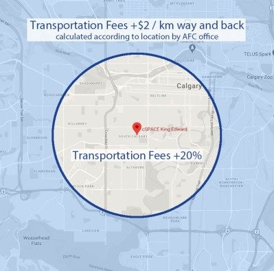 farther than 5km from the AFC campus, the administration will calculate the extra fee with the following method: +$2 per km there and back for each class.